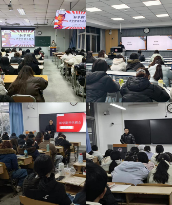 新学期伊始,学院紧抓学风建设关键期,打出“组合拳”,营造浓厚学习氛围。开学第一周,各班级围绕“新学期、新目标、新征程”召开主题班会,辅导员引导学生总结回顾上学期学习情况,查摆问题、明确目标,科学制定个人成长规划,激励学生以昂扬斗志投入新学期学习。为进一步强化学风管理,学院健全巡课听课制度,班子成员、辅导员深入课堂一线,全面掌握学生出勤情况、课堂纪律及学习状态,确保课堂出勤率、前排就坐率与抬头率始终保持高位运行。同时,学院从课堂考勤、学业帮扶、学术活动、评优激励四个方面精准发力,构建完善学风建设工作体系,推动形成“比、学、赶、帮、超”的良好学习生态,助力学生学业发展提质增效。