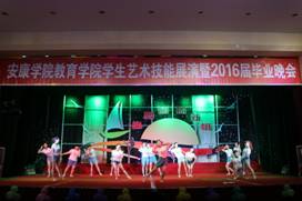 “安康学院教育学院学生艺术技能汇报暨2016届毕业晚会”于2016年6月25日晚19:30在江南大礼堂举行。安康学院党委副书记、纪委书记闵小平、党委组织部部长屈险峰、后勤处处长高立平老师、团委副书记李光梓、安康学院保卫处办公室主任张峰以及教育学院全体师生观看了本场晚会。晚会伊始,教育学院院长黄璐阳向2016届毕业生生致辞,祝福所有即将离校的每一位同学可以找到满意的工作,勉励在校生要努力奋斗让自己的未来更加美好,祝愿教育学院发展的越来越好。