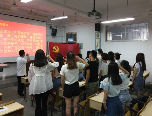主题党日活动分为,“谈理想、谈信念、谈发展”的谈心活动和“不忘初心”重温入党誓词两个内容。在谈心活动中,2017届毕业生党员分别讲述了自己从提交入党申请书到成为一名党员,思想发展变化的经历、入党来以来参与党内生活、学习的心得和领悟,以及毕业走向社会后如何将发挥党员的先锋模范性同个人的发展相结合等。学生党支部书记赵斌,给毕业生党员提出以下几个希望:希望将教育学院良好的学风,带到工作岗位上,养成良好的工作作风和敬业奉献的职业精神;希望在新的党组织中继续加强个人政治理论学习,不断提升政治素养,展现教育学院学生党员的政治风貌;希望个人能在新的岗位上做出新的成绩,回报学校、回报社会。谈心活动结束后,学生党支部书记赵斌带领全体毕业生党员面对庄严的党旗重温了入党仪式和入党誓词。