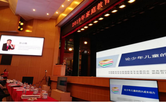 来自全国各地的教育专家分别进行主旨发言,共谈家庭教育,纵横捭阖,论点精辟。在家庭教育理论集中探讨之后,此次年会还进行六个分论坛的实践展示与交流,每个分论坛均根据主题组织学校分享、学术报告、学术沙龙活动。大会最后,中国教育学会家庭教育专业委员会常务副理事长孙云晓作2019年家庭教育学术年会闭幕式总结性发言。孙云晓深情地表示:参加这次年会,最深的感受是两个字——幸福。幸福是一种期待,幸福是一份虔诚,幸福是一颗初心,幸福是一起分享。如何开启儿童成长动力,培养具有家国情怀的优秀少年?他认为体验、榜样、目标、习惯是儿童成长动力中特别重要的四大因素。