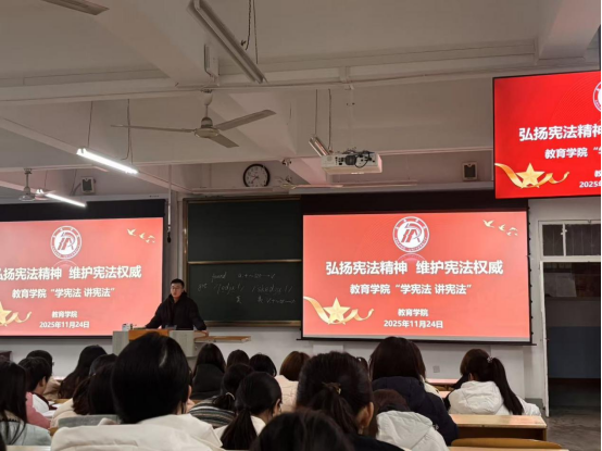 2025年12月4日是我国第十二个“国家宪法日”,为进一步增强青年学生的宪法意识与法治素养,教育学院近日开展了“学宪法 讲宪法”系列活动,营造了尊崇宪法、学习宪法、遵守宪法、维护宪法的浓厚氛围。