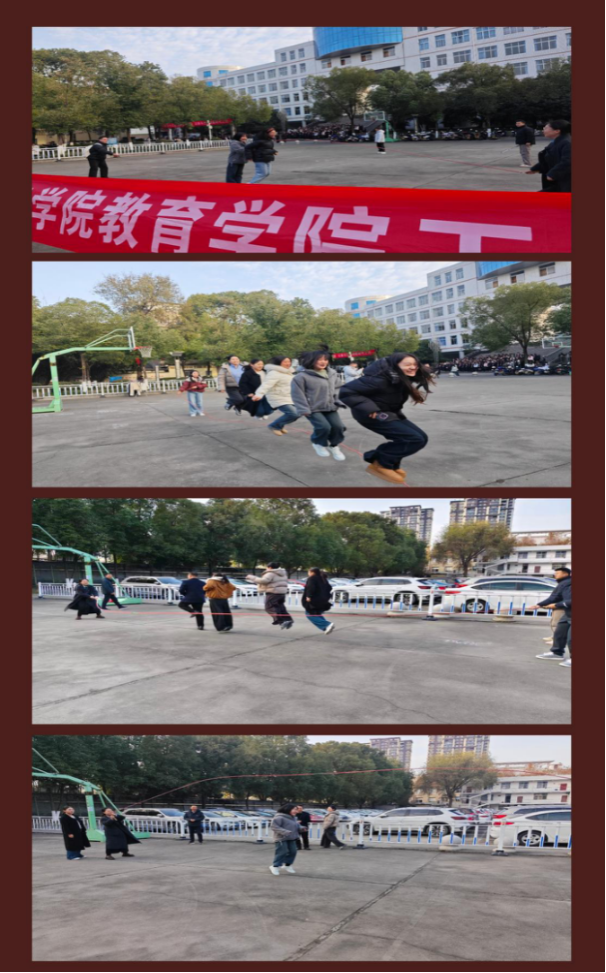 为丰富教职工文化生活,增强团队凝聚力,营造和谐向上、和谐共进的校园氛围,2025年12月4日下午,安康学院教育学院工会分会在江南校区篮球场隆重举办冬季趣味运动会。本次运动会以“运动促健康,团结聚合力”为主题,吸引了教育学院各教研室教师踊跃参与。