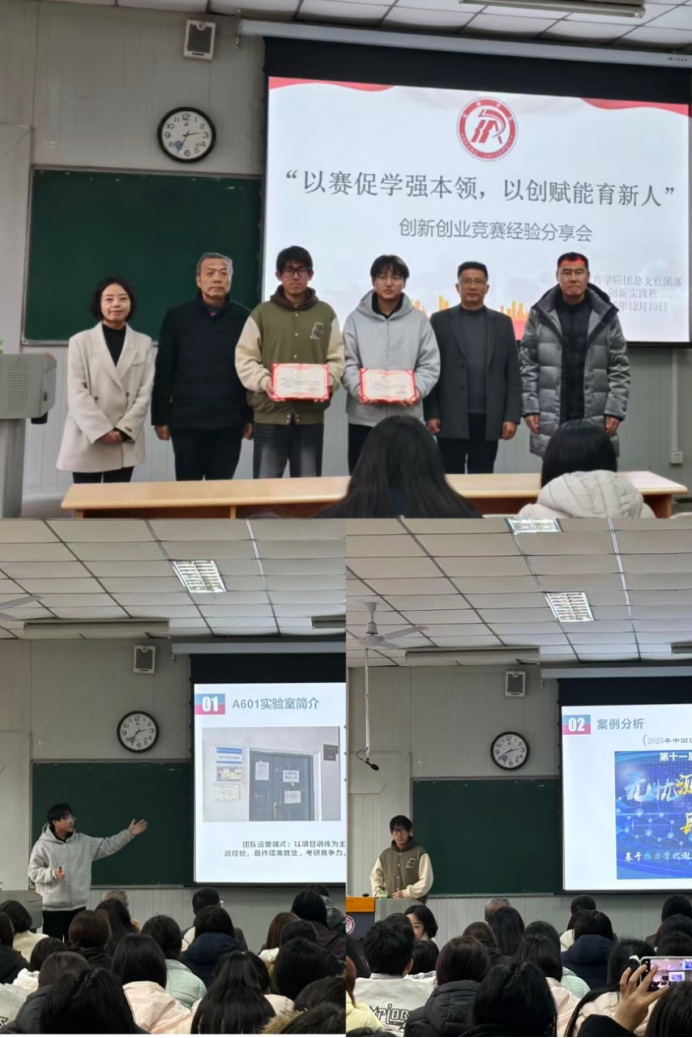 为深化创新创业教育,提升学生竞赛实践能力,12月19日下午,教育学院于1012教室举办“创新创业竞赛经验分享会”。本次活动由教育学院创新实践社与社团部联合承办,邀请电信学院A601实验室负责人王子新、张根杰两位同学担任主讲。电信学院教师崔智军、教育学院副院长李支其、创新实践社指导老师邹超然、团总支书记(创新创业办公室主任)李静出席活动,学院各年级100余名学生参会。