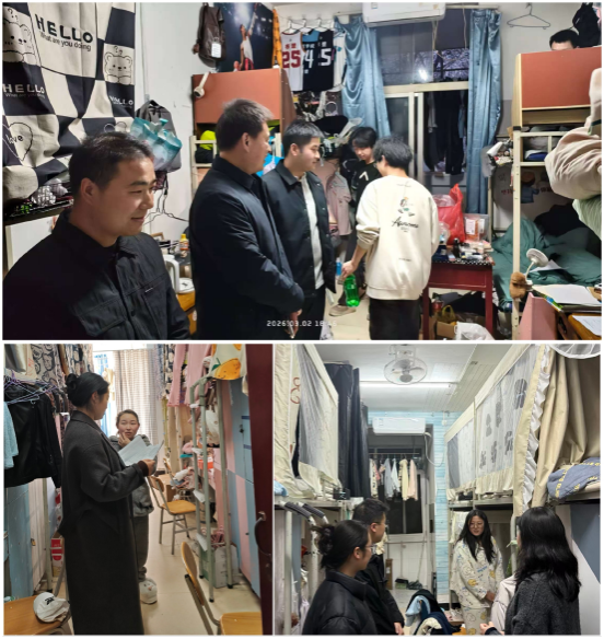 学院始终将稳定安全置于工作首位。开学前夕,通过班级群等线上平台持续发布假期及返校交通安全提示,强化学生出行安全意识。报到期间,学院领导班子成员带领全体辅导员深入学生宿舍,开展走访慰问与安全专项检查,细致了解学生假期生活与新学期规划,认真听取学生对学院教学、管理与服务的意见与建议,并对宿舍用电安全、消防设施配备及卫生环境进行重点排查,针对私拉电线、违规使用大功率电器等问题现场督促整改,切实消除安全隐患。