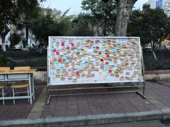 活动设置“标签粉碎区”与“祝福留言区”两大互动板块。在标签粉碎环节,同学们主动撕下代表束缚、偏见与消极评价的标签并投入粉碎箱,以仪式感告别内耗、拒绝被定义,在与自我和解中重拾自信。祝福留言环节,大家在便利贴上写下真挚祝愿,贴满展示墙,一句句暖心话语传递善意与关怀,展现出师生友爱互助、积极向上的精神风貌。