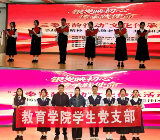 教育学院学生党支部精心编排并表演了诗朗诵《晨曦微光,志愿同行》。同学们以饱满的情感和昂扬的风貌,诠释雷锋精神与新时代志愿精神,展现青年学子服务社会的责任担当,赢得现场热烈掌声。活动还设置了榜样事迹分享、养老惠民政策宣讲、移风易俗承诺诵读等环节,学生党员全程参与,在沉浸式体验中接受精神洗礼,感悟助人为乐、孝亲敬老、爱岗敬业的崇高品格。